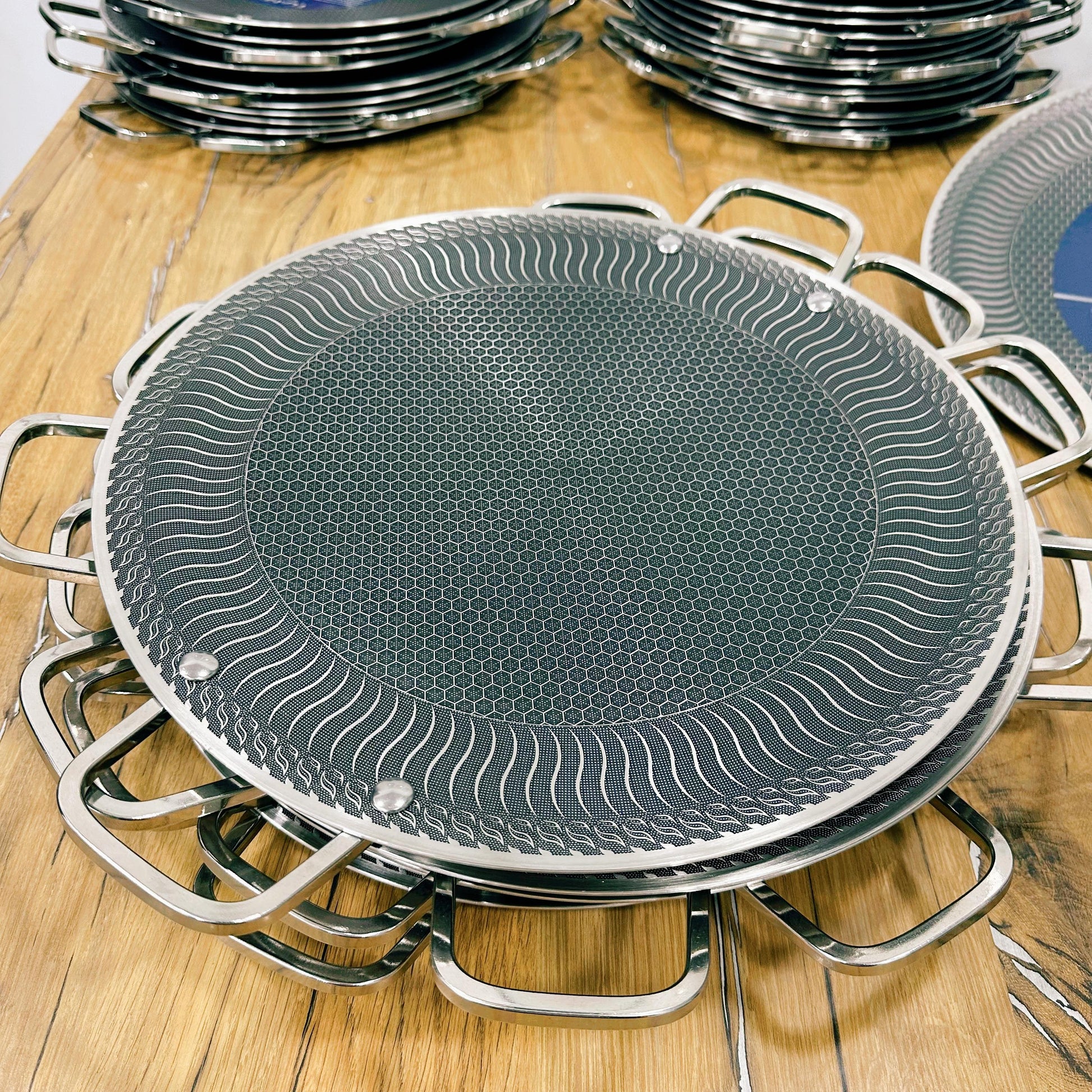 Introducing the Lot Honey Comb Laser Coated Tawa: a culinary essential with precision honeycomb design and advanced laser coating for superior non-stick performance, elevating your cooking experience to new heights. Enjoy effortless cleanup and perfect results every time with this innovative kitchen companion.